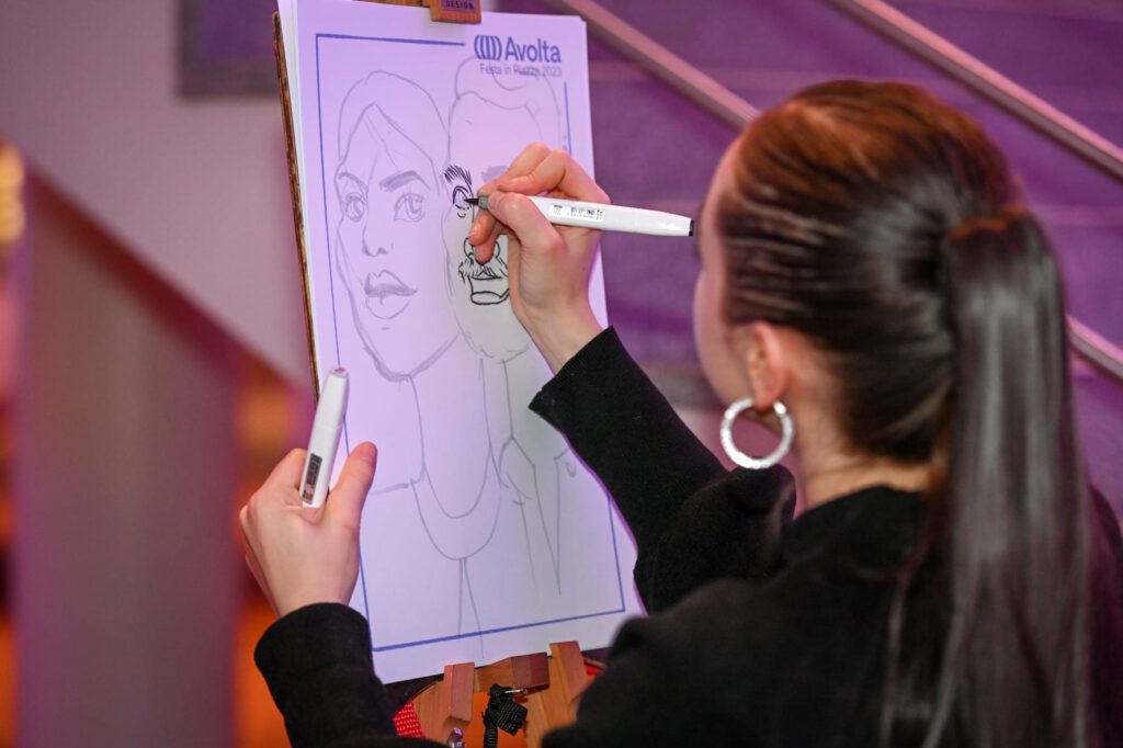 AUF EVENTS UND HOCHZEITEN SITZE ICH MIT MEINER STAFFELEI IM GESCHEHEN UND ZEICHNE DIE GÄSTE.
